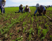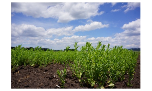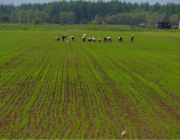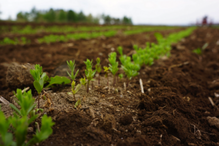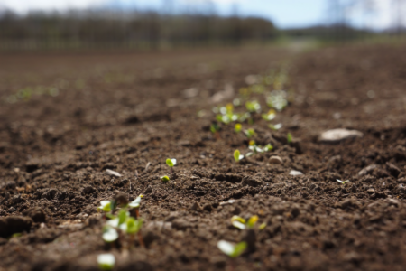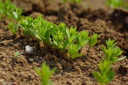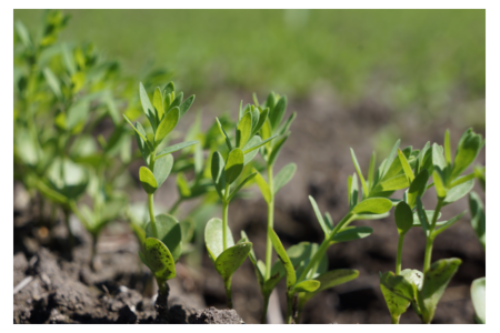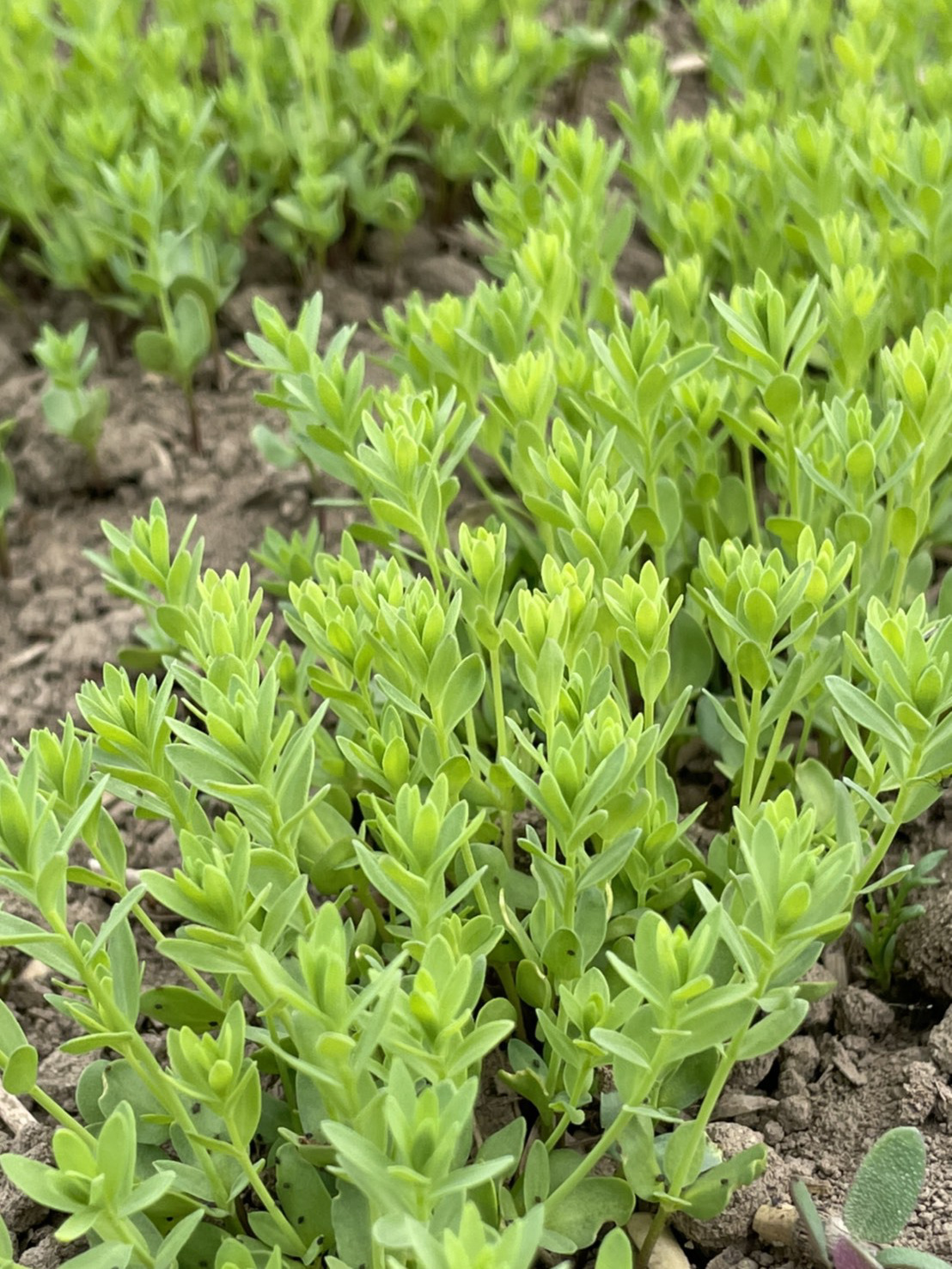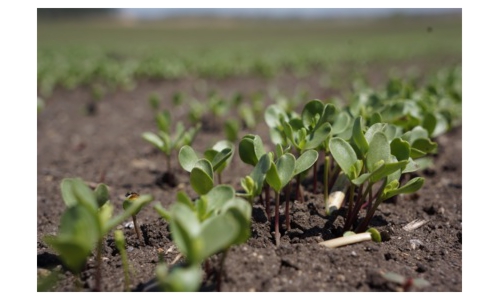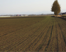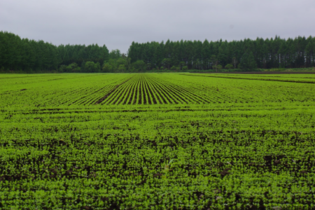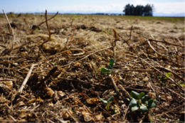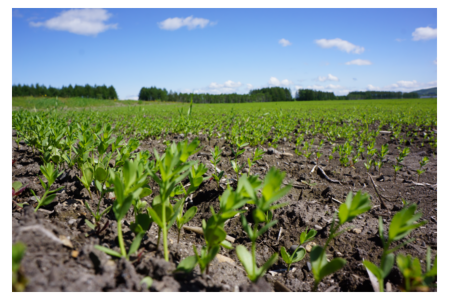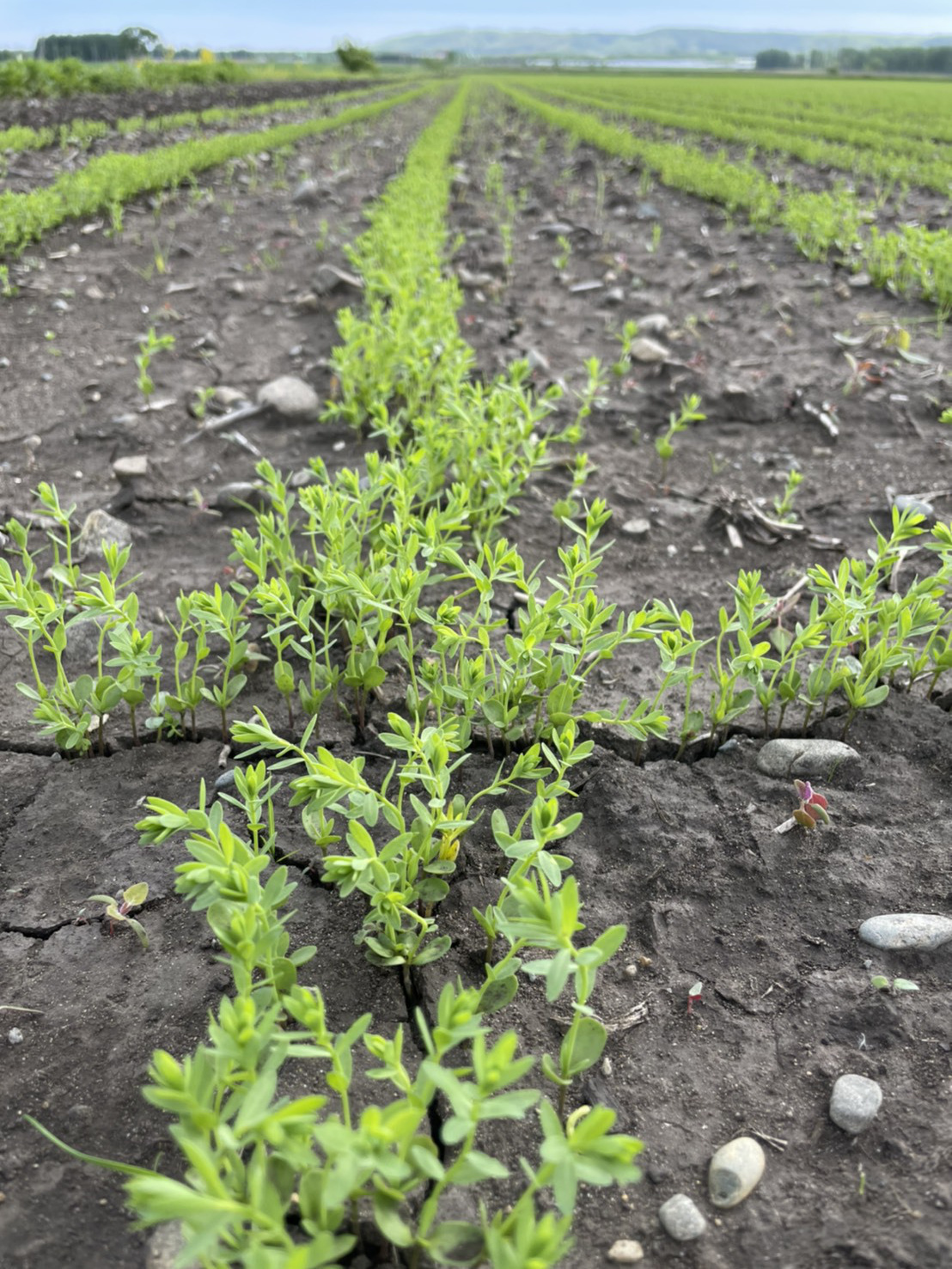亜麻の赤ちゃんと小さな芽が出たばかりの、1ha畑の様子!