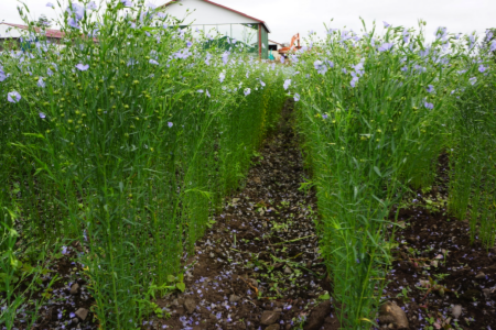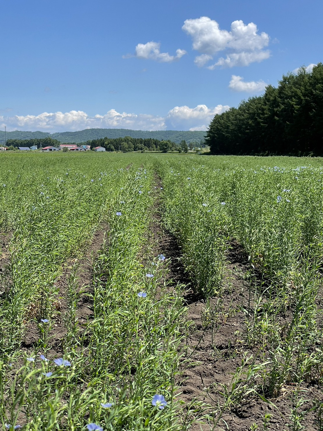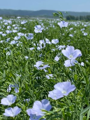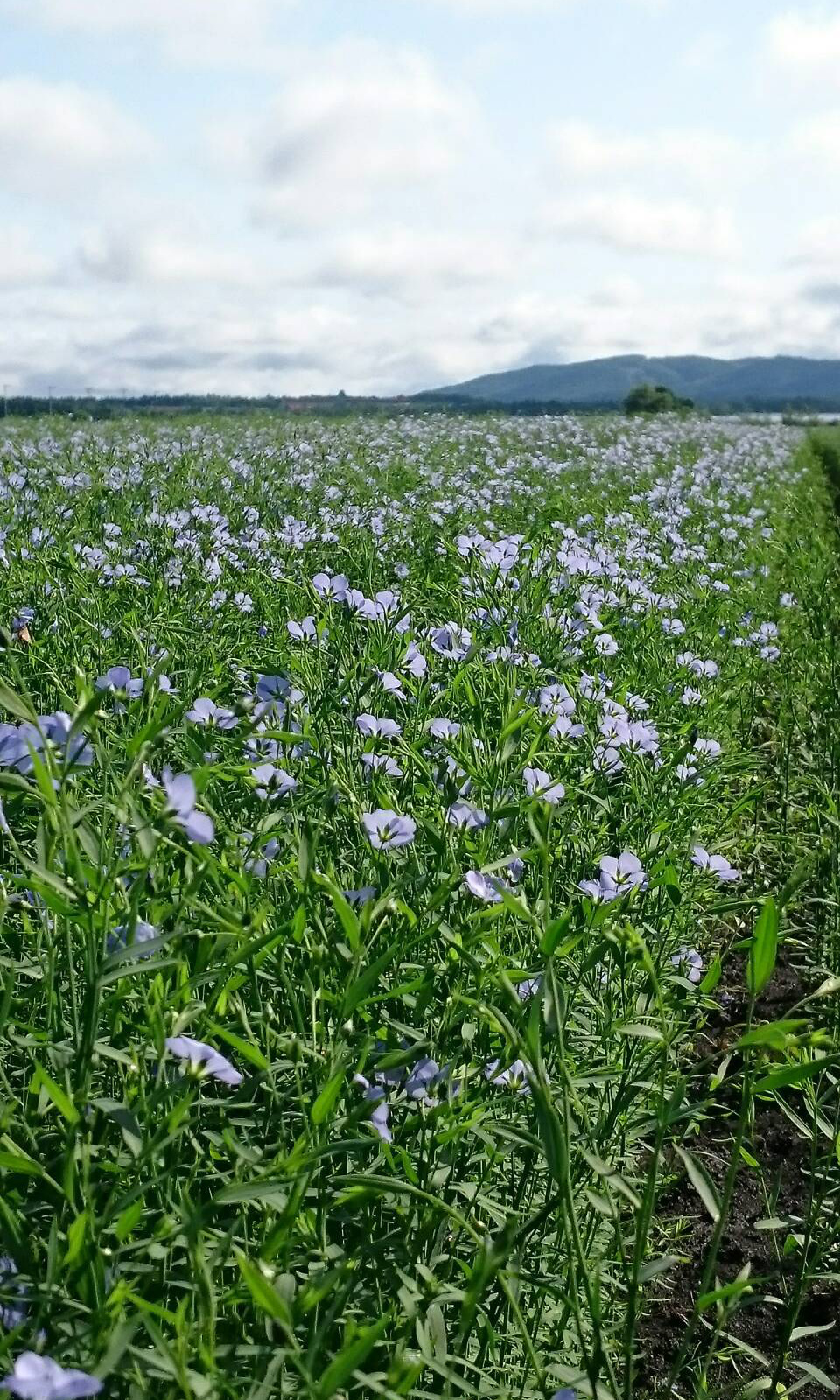 「花は可憐で美しく、実は亜麻仁油やパンに、化粧品、サプリメントにも成り、オメガ3で老化防止や肌、若返りにも調べた所、とても良い様ですね!」私達も日々油を味噌汁等に~是非皆様もお試しあれ!こちらも、次回六次化のお話の中で。