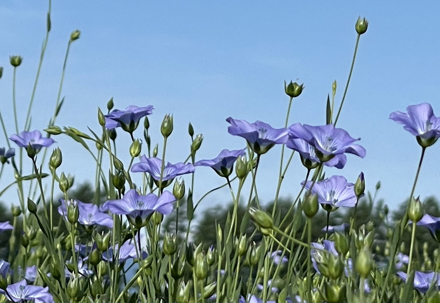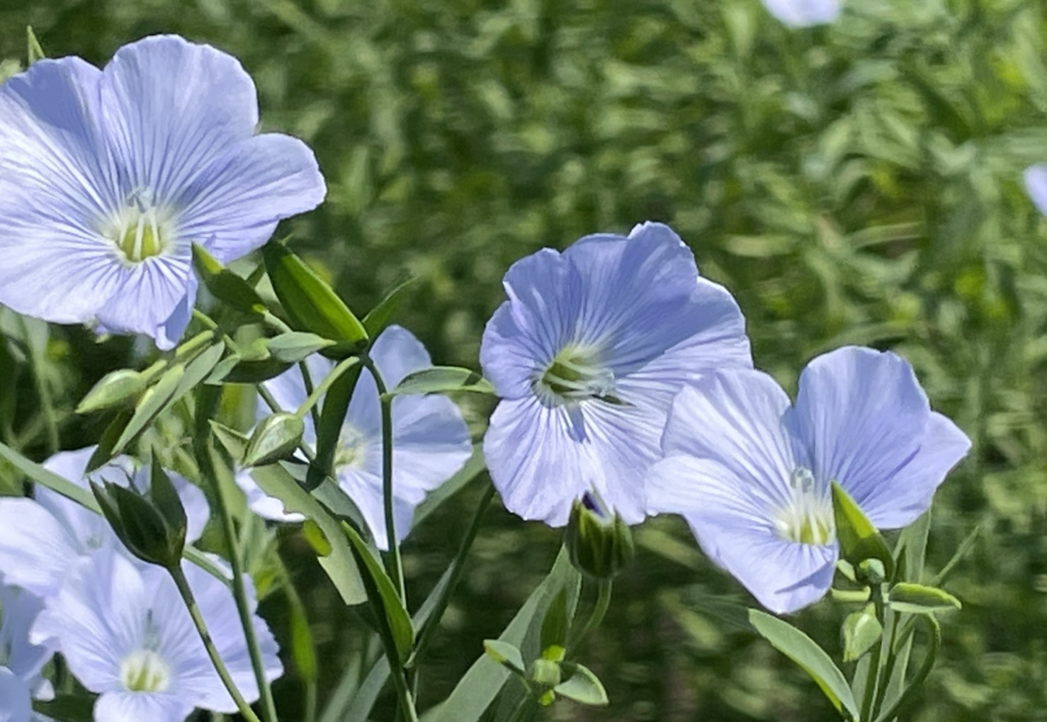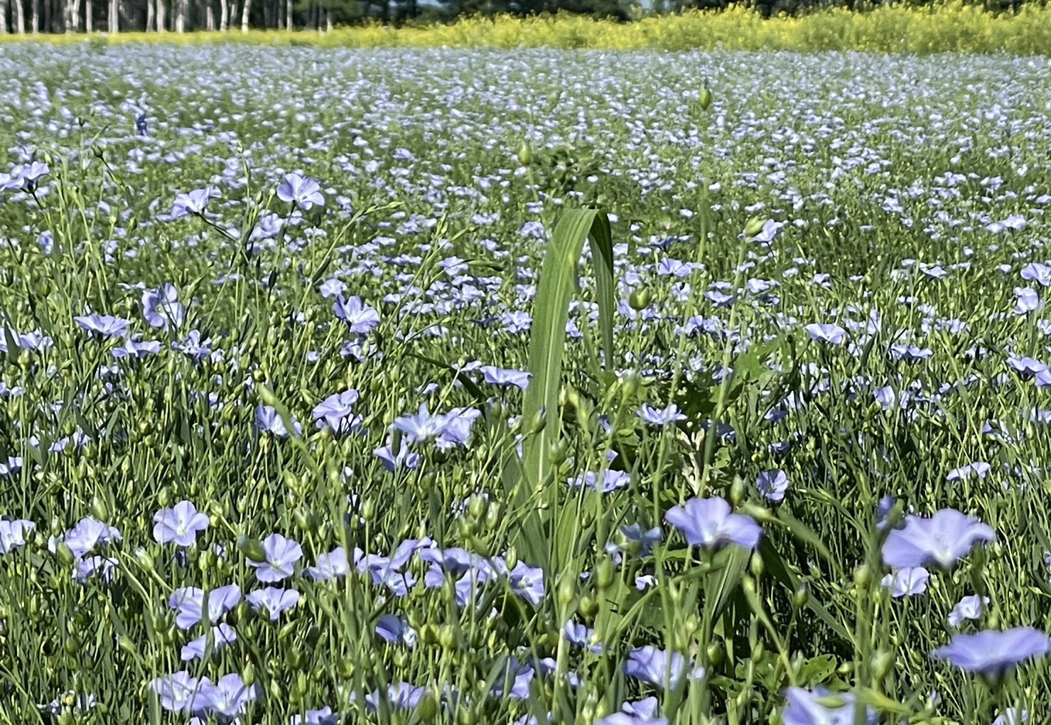 待ちに待った亜麻の開花!約3週間をかけて、咲き競います。