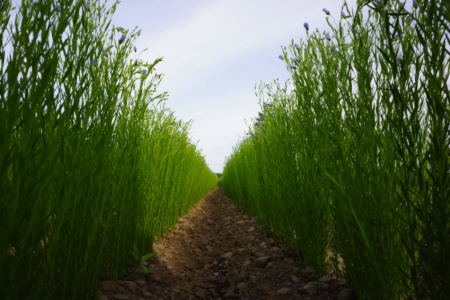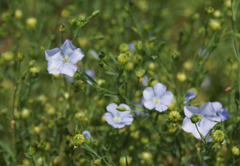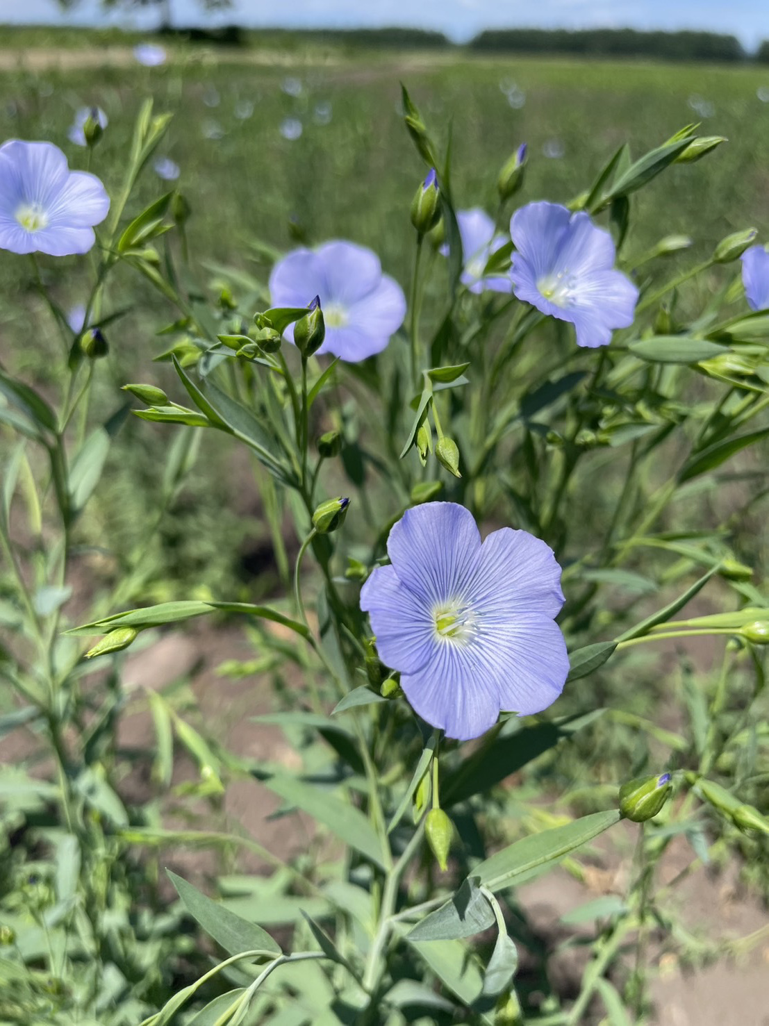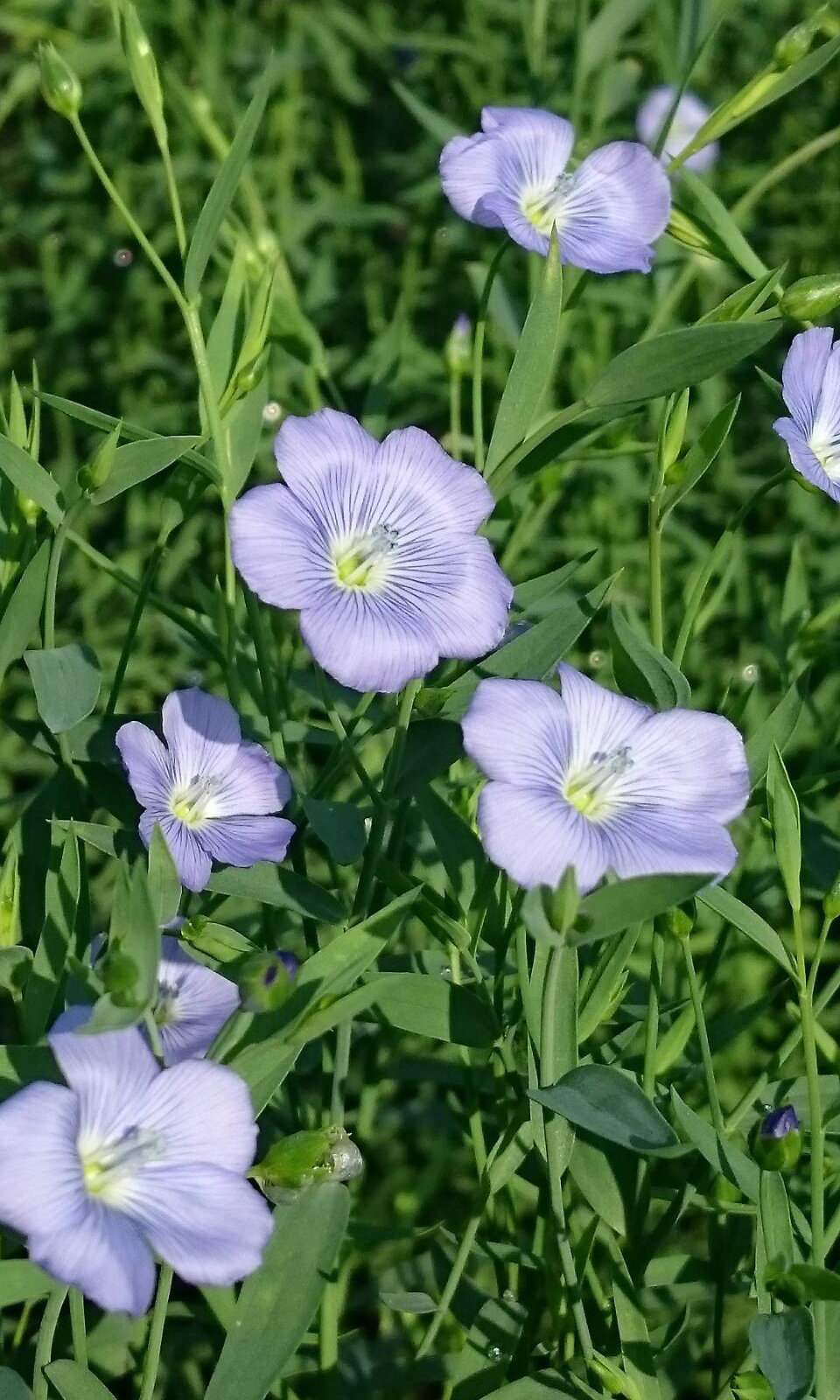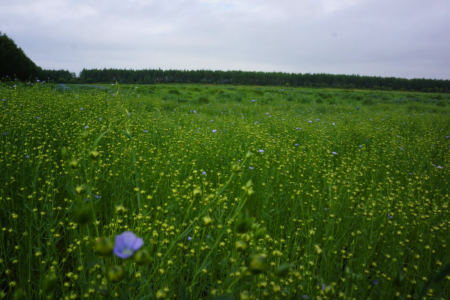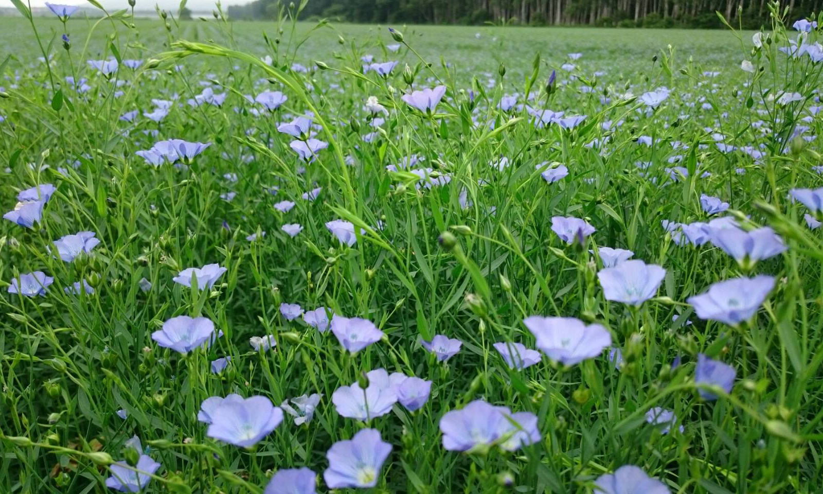 待ちに待った亜麻の開花!約3週間をかけて、咲き競います。