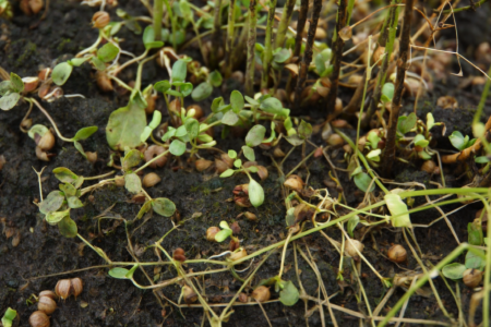 防風林の近くには、荏胡麻が成長しようと、頑張って居ますよ(笑)
