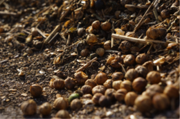 ゴマより少し大きく平たく、茶色で“ツヤツヤ”に成ります。又、9月の収穫時に~