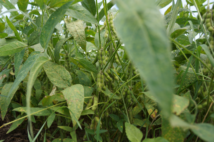 今年の大豆は莢数が多いです。