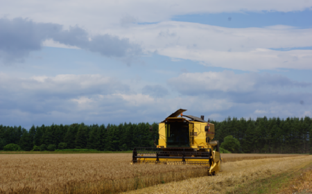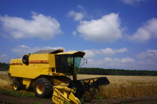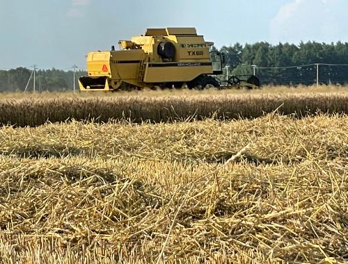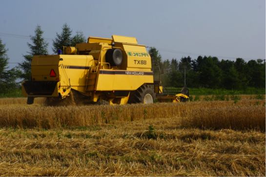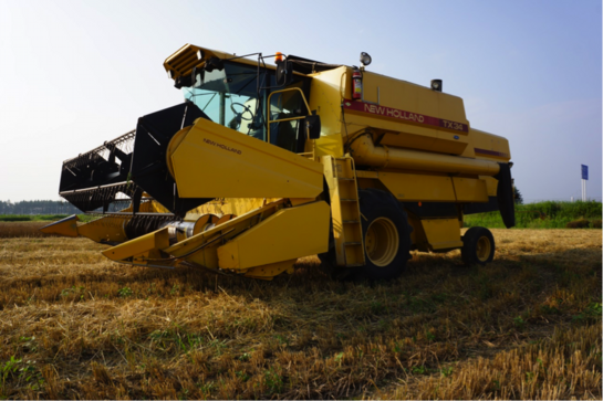 写真は、8月1日きたほなみ コンバイン ニューホランドTX68 ヘッド5m40cm