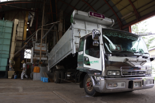 コンバインで刈り取った小麦を、敷地内にある乾燥施設で乾燥させます。