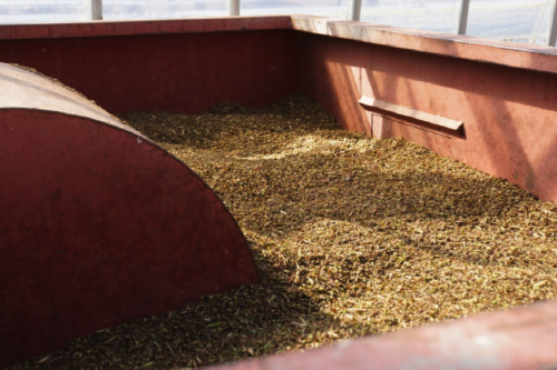 同日の午前10時半頃、ハウス内の静置式豆乾燥機へ~~