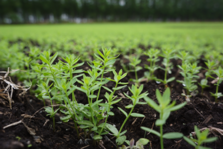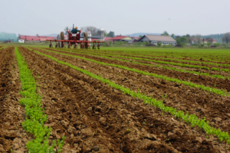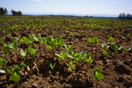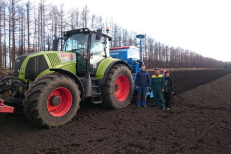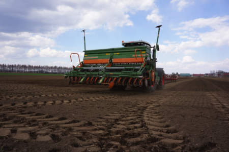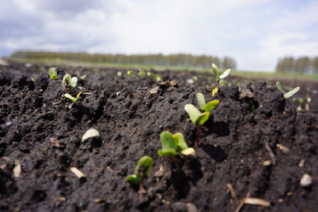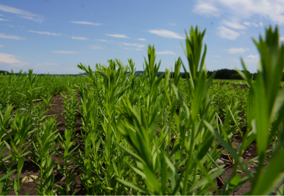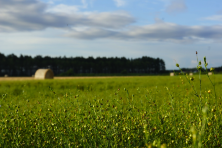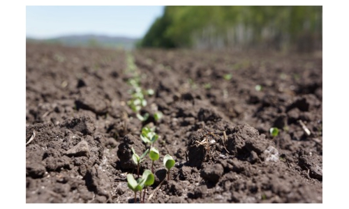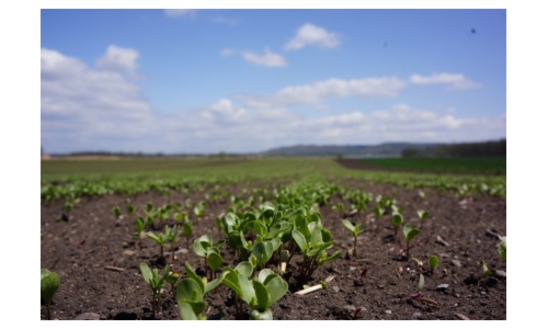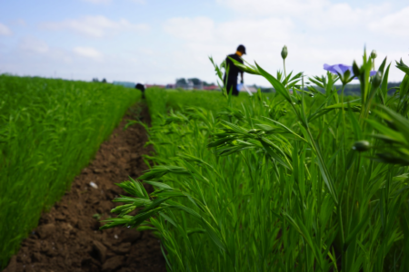 亜麻の赤ちゃんと小さな芽が出たばかりの、1ha畑の様子!