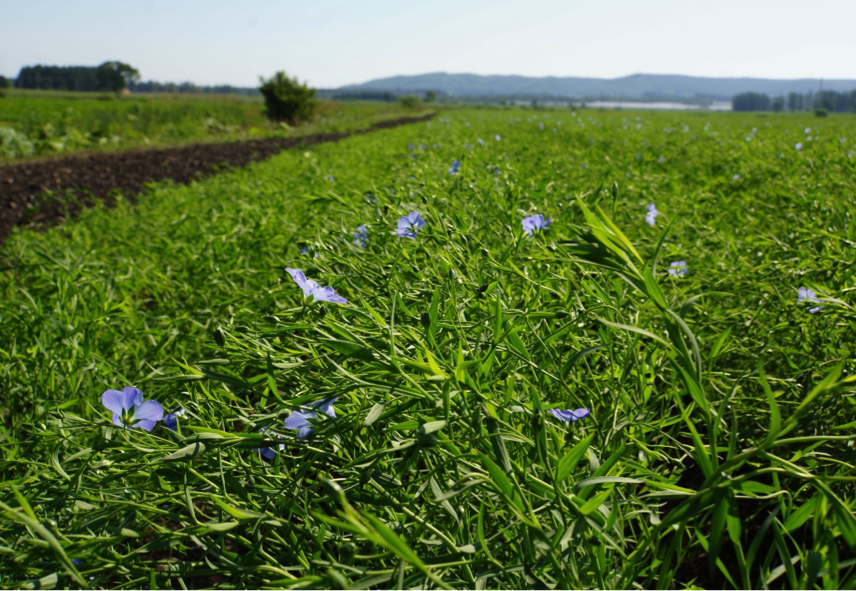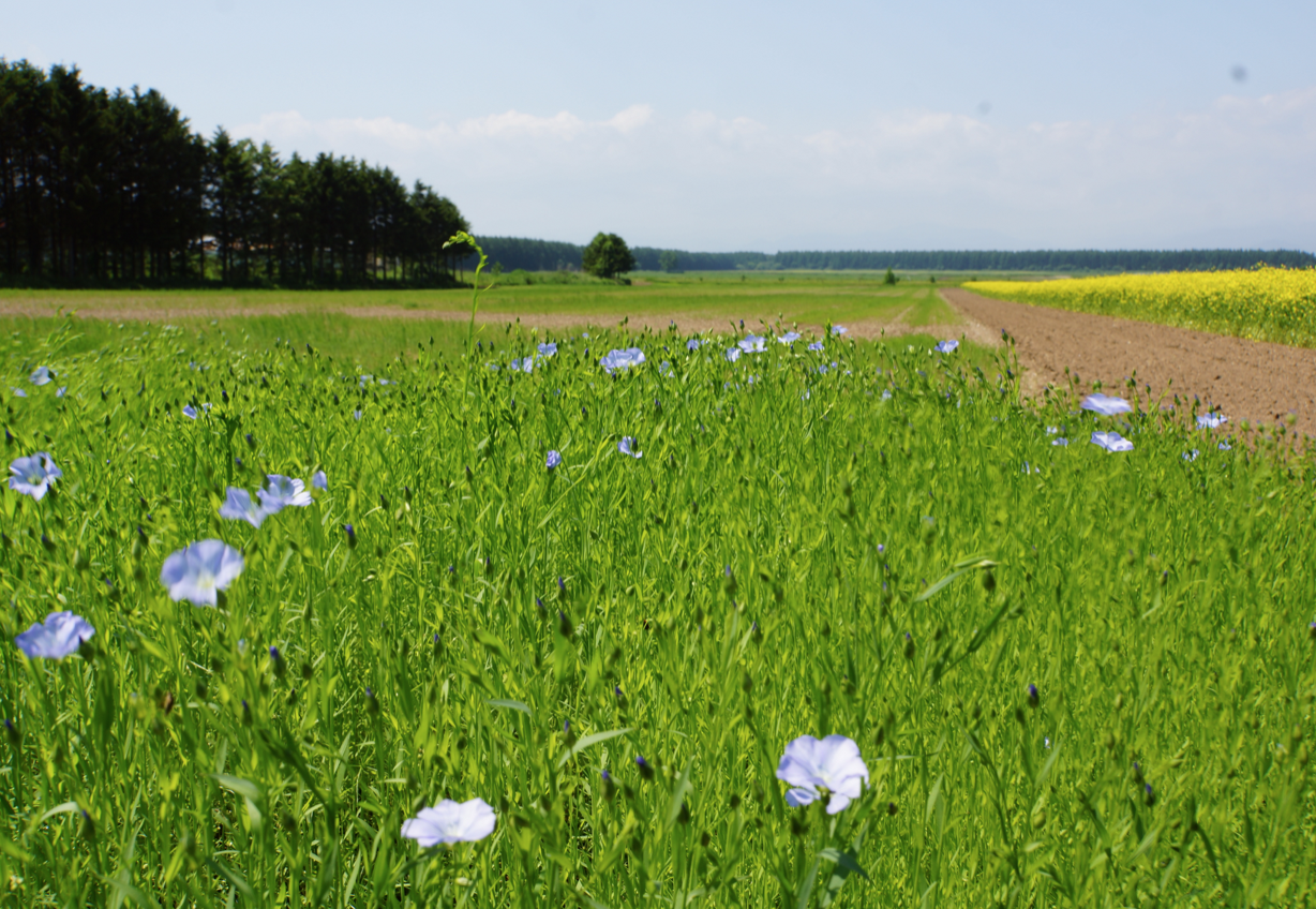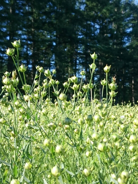 「花は可憐で美しく、実は亜麻仁油やパンに、化粧品、サプリメントにも成り、オメガ3で老化防止や肌、若返りにも調べた所、とても良い様ですね!」私達も日々油を味噌汁等に~是非皆様もお試しあれ!こちらも、次回六次化のお話の中で。