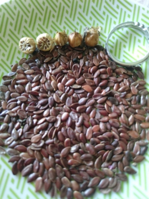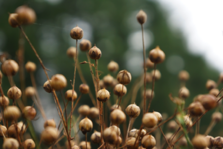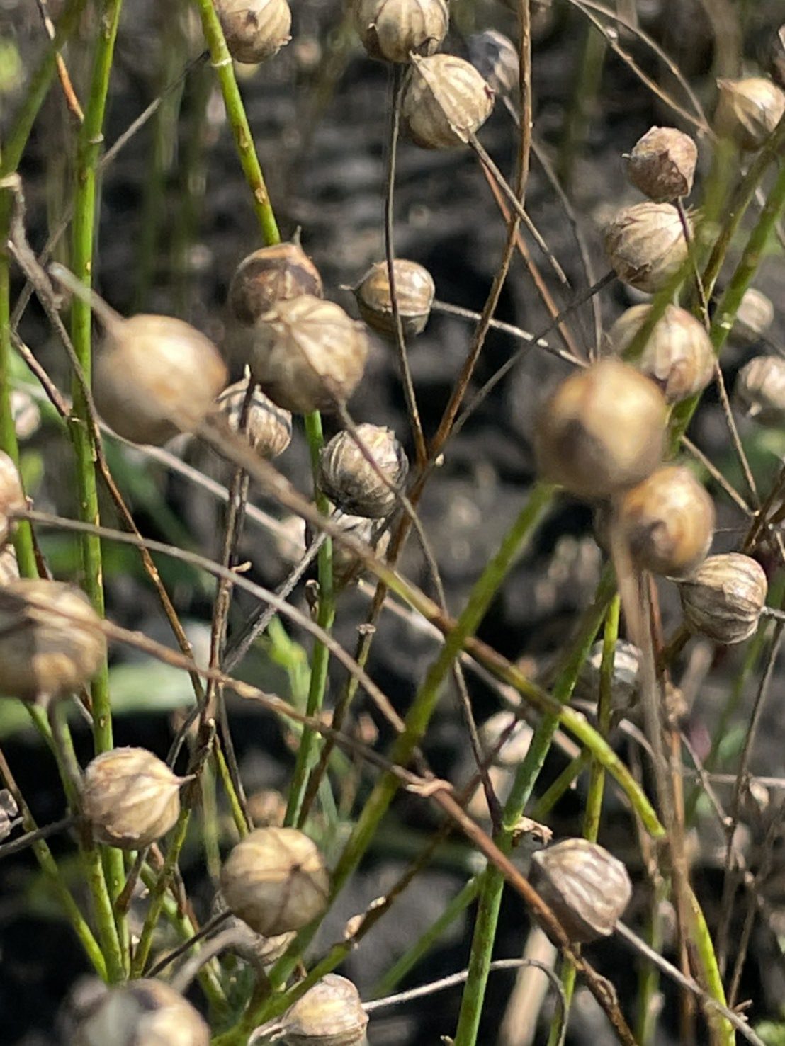 花は、もう終わりに近づき、“亜麻ボール”の実も又、カワイイものです。