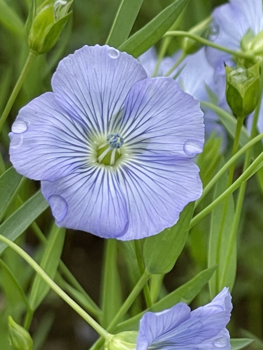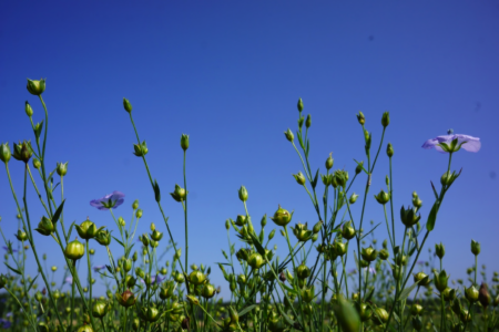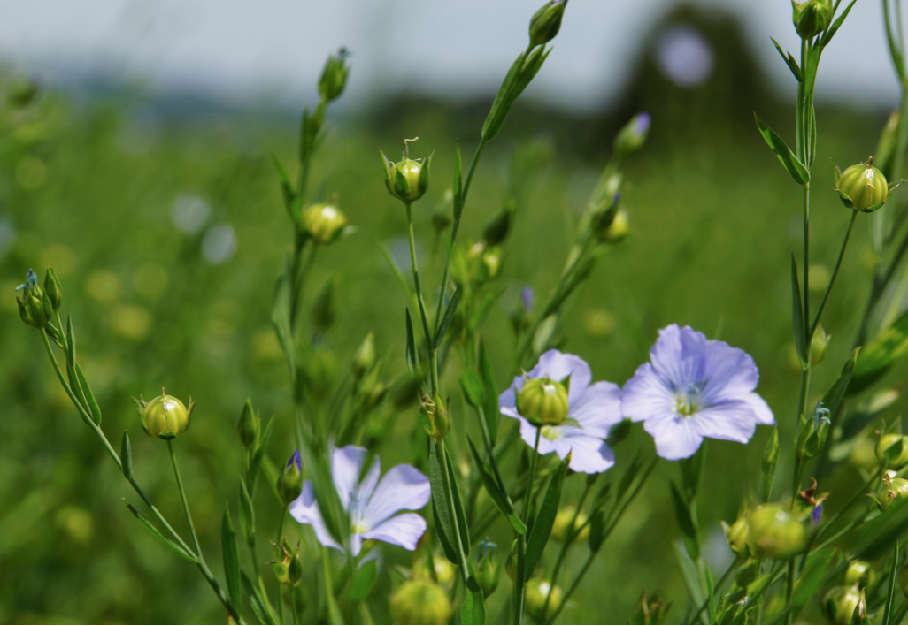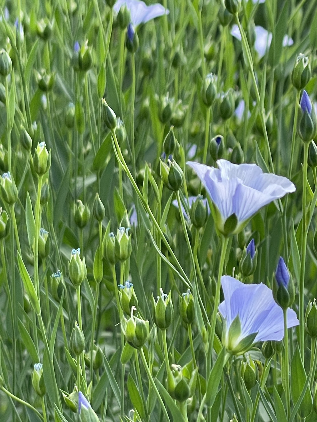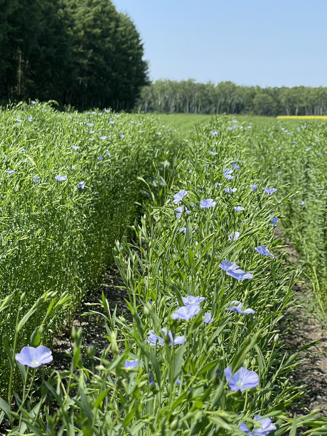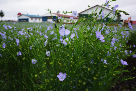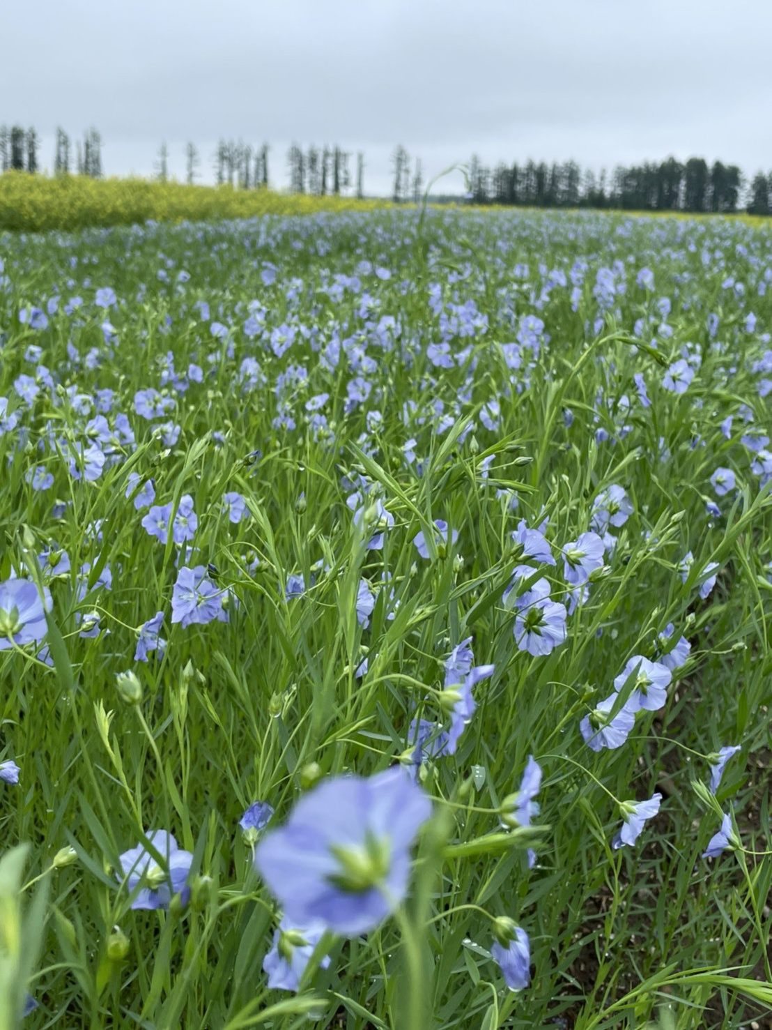 待ちに待った亜麻の開花!約3週間をかけて、咲き競います。