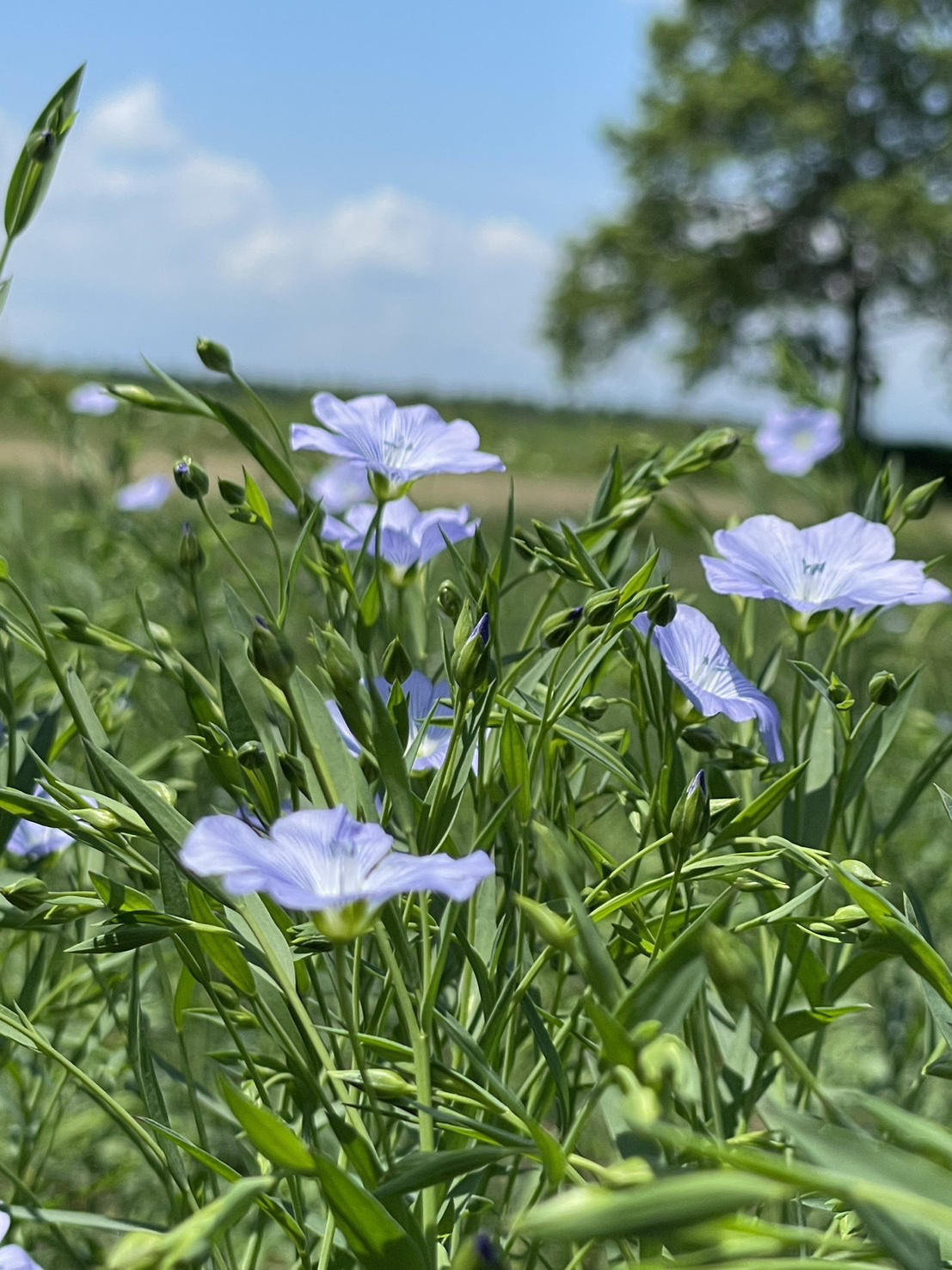 1haの亜麻の花畑でも、少し開花が始まりました☺️