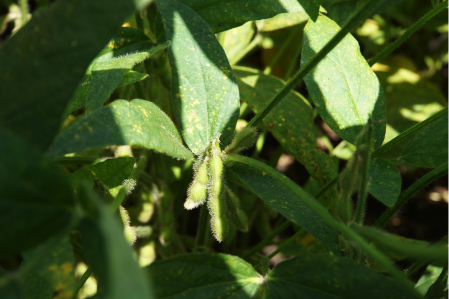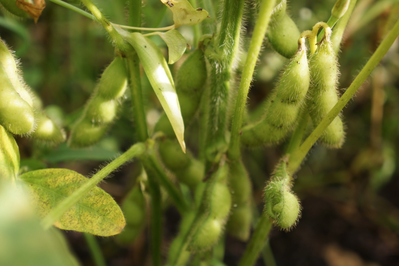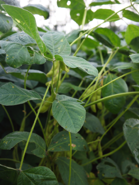 今年の大豆は莢数が多いです。