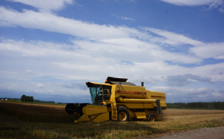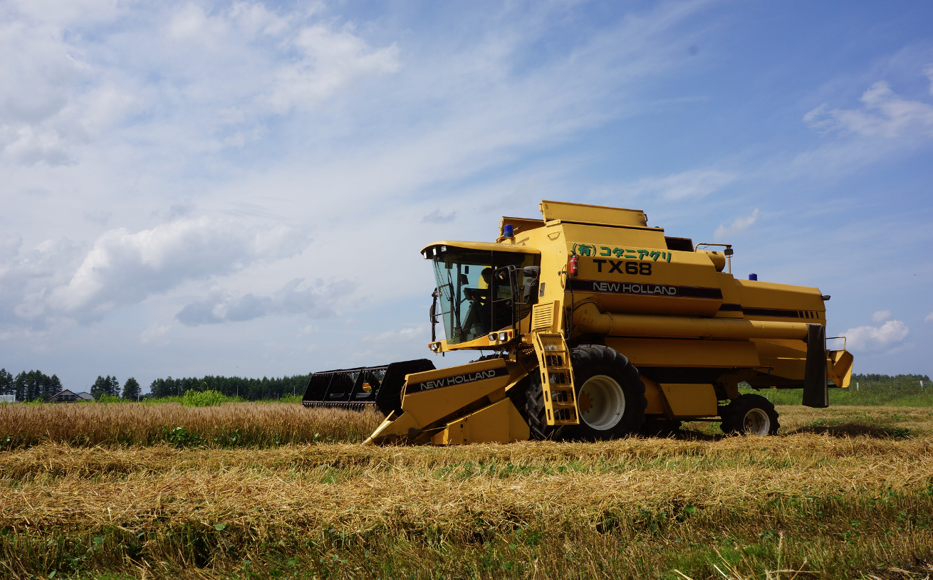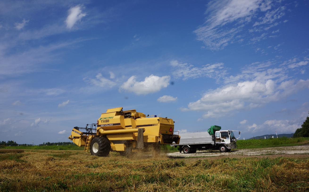 写真は、8月1日きたほなみ コンバイン ニューホランドTX68 ヘッド5m40cm