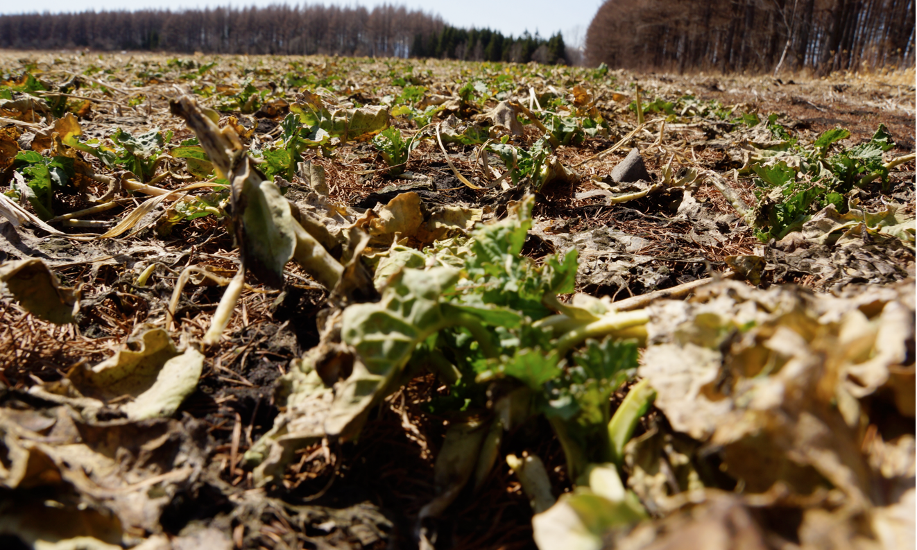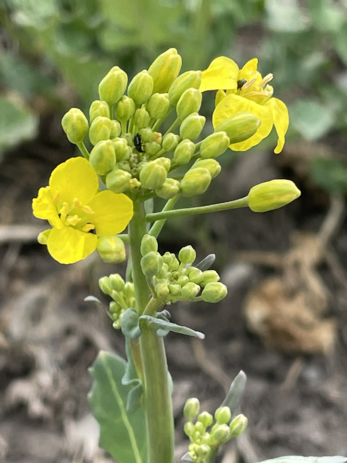 蒔き直しの畑には、生命力の強い花を咲かせる菜の花。