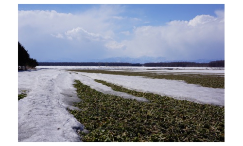 越冬後雪解けの春になると、段々姿が小さくなって‥
