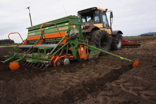 播種後、ローラーで鎮圧し、抑えが肝心です!